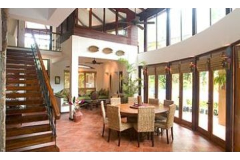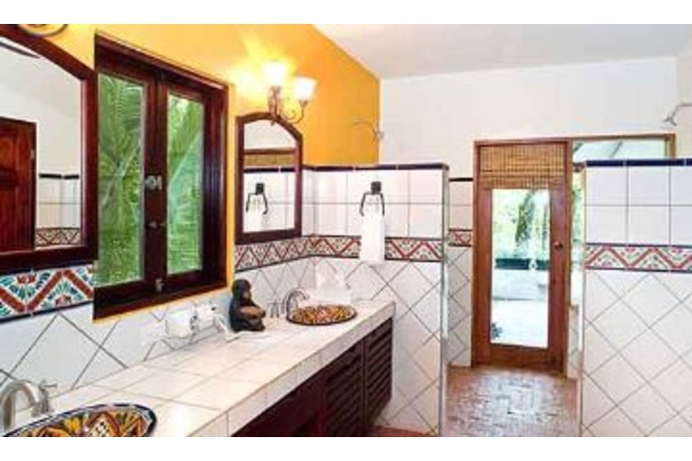 The master bedroom has a spacious bathroom, king size bed and covered balcony overlooking the private pool and the Pacific Ocean. Two more bedrooms have queen beds, and all bedrooms are air-conditioned. The house sleeps 8 guests comfortably.Surrounding Description
