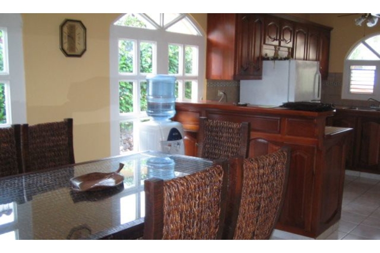 With four bedrooms, each with their own bathroom and exit to a small terrace, this home plus guesthouse features a fully equipped kitchen, water cooler, daily maid service (except Sunday), air conditioning plus cable TV. The front veranda is a great place to relax and enjoy the ocean breeze plus it's only a sixty-second walk to Cabarete Bay.Surrounding Description