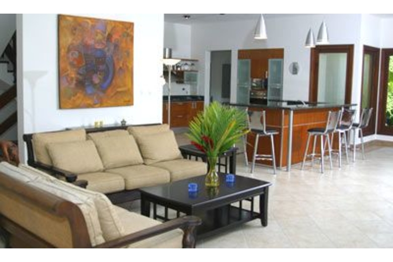 This villa features four bedrooms, four baths, four queen beds, fully equipped kitchen, swimming pool, television room with large screen projector, terrace with outdoor furniture, TV, air conditioning, maid service and access to all Sea Horse Ranch facilities. Tasteful decor and comfortable furnishings.Surrounding Description