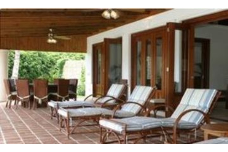 The villa itself features a Feng Shui design which accommodates the most superb Caribbean influenced décor with thespian white walls combined with stunning wood works, the patio with its white columns and striking outdoor dining table resembling an Italian-style piazzetta.This villa in its entire splendor simply whisks you off your feet with its simple yet refined settings. The villa Features five bedrooms, each with its own bathroom and a separate powder room. This architectural gem is located on the fourth hole of the Country Club golf course.Surrounding Description