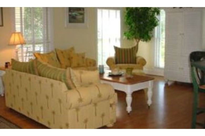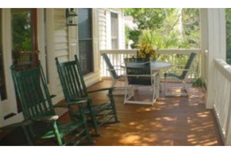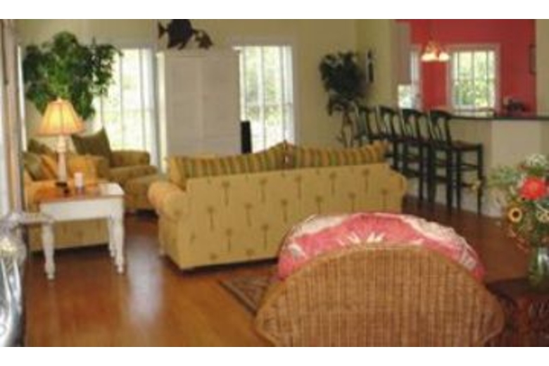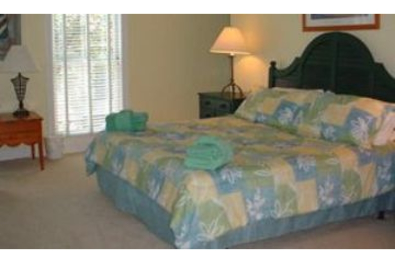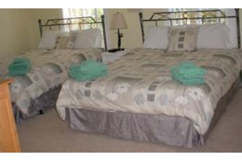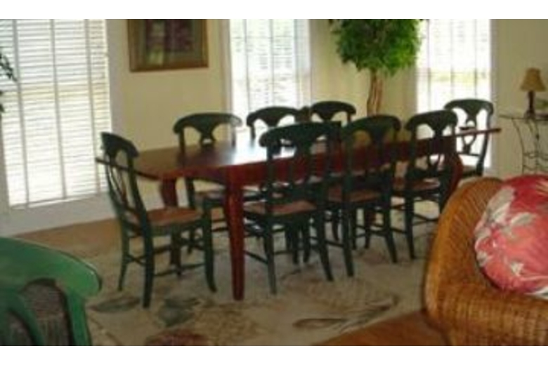 The first floor offers four bedrooms. The first two have king swing beds, and the second two have 2 queens in each (one with a VCR). You will also find a wet bar downstairs, complete with a small refrigerator and sink. 17 steps take you to the second floor. The living room contains a queen sleeper sofa, TV, VCR, and stereo. There is also a game table for two in this room. From the living room, you can access the expansive upstairs balcony with a set of rocking chairs and a great pool view. The kitchen is just off the living room, and features granite countertops, all GE appliances, an island cook top, a breakfast table for 6, and an eat-in bar for 6. More formal dining is offered in the large dining area for 10. You will also find a den upstairs with a leather sleeper sofa, TV, VCR, and half bath. Two more bedrooms are located on the second floor, each with two queen beds and VCR's. Outdoor amenities include a garage, gas grill, Jacuzzi, and large swimming pool.Surrounding Description