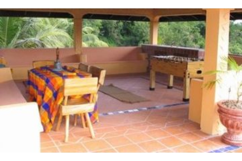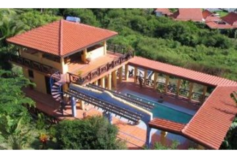 Reef View Pavilion's Tradewind Pavilion is the upper of the two villas. This is a three-bedroom villa, accommodating up to six guests. Turtleback Pavilion is lower down the hillside and has a one-bedroom suite ideal for a couple. Both villas have their own pools and rooftop pavilions. The villas are available separately or can be combined in a single rental.A luxury rental villa in an elevated setting, Tradewind Pavilion is an excellent vacation spot for sun, breeze and ocean views on Grenada, one of the few remaining paradise islands in the Caribbean. Tradewind Pavilion has everything you could wish for in a luxury vacation villa in Grenada.Tradewind Pavilion is a fully air-conditioned three bedroom, four bath/shower villa. The villa comprises multiple indoor and outdoor areas from which to enjoy the scenery and your various vacation activities. It has been designed to offer fantastic views and a connection with the outside from almost all sections, without compromising privacy.Tradewind includes a rooftop pavilion with comfortable built-in seating, wet bar, dining table and sundeck, overlooking the beautiful swimming pool. It offers a magnificent 360° view of the neighborhood and its surrounds, Grenada’s lush hilltops and, of course, the ocean.The easterly trade winds breezing through the pavilion will cool your body and lift your spirit. The main level comprises a large kitchen, intimate living and dining areas in an open plan layout, surrounded by wrap-around porches and verandas and a swimming pool.The indoor spaces are air conditioned and have ceiling fans for absolute comfort. The kitchen is fully equipped complete with microwave oven, liquidizer, coffee maker, toaster and teapot.From the indoor living area, wooden French doors fold back onto a covered terrace revealing the lush, tropical gardens and the magnificent bays and ocean beyond. Gentle breezes cool and caress your skin allowing you fully immerse yourself in the tropical and serene surroundings.The three comfortable bedrooms are located on the lower level. The master bedroom, named the Plumbago Room, is king-bedded with ensuite bathroom and shower.The Plumbago bedroom also has direct access to a large outdoor-inspired bathroom with whirlpool tub, and two invigorating showers lined with river stones, sea coral, and even a seat made of fossilized squid.The Plumbago Room is fitted with multiple French doors that offer a full view of the sea - even while relaxing in bed. The Plumbago Room adjoins a covered veranda where you can read, relax and enjoy a drink.The second bedroom, called the Reef Room, is double-bedded with an ensuite bathroom. The Reef Room is also fitted with multiple French doors that offer views of the coconut treed neighborhood beach, and luminescent reefs beyond. The Reef Room also has a small covered porch with a lovely view.The third bedroom, named the Regatta Room, is queen-bedded with an ensuite bathroom. The Regatta Room is fitted with French doors that lead to its own small covered porch and onto the courtyard outside.Turtleback Pavilion is the second and smaller villa of the two at Reef View pavilions and consists of an open plan air-conditioned one bedroom suite, with private swimming pool and rooftop pavilion.The villa was designed to give fantastic views and interconnect with the outdoors from almost all indoor and outdoor spaces without compromising privacy.The rooftop pavilion contains comfortable built-in seating, wet bar, dining table and sundeck, overlooking the beautiful swimming pool. The rooftop pavilion offers peaceful views of the tropical gardens, and the surrounding neighborhood including the bay and small beach below.The main level comprises cozy and intimate bedroom and living room spaces, along with an inconspicuous kitchenette in an open plan layout. The suite is surrounded by various covered and uncovered porches, verandas and a swimming pool. The indoor spaces are air conditioned with ceiling fans for absolute comfort. The suite is king bedded, with views of the swimming pool and sea.For your convenience, the kitchenette is fully equipped with an oven, fridge/freezer, coffee maker, microwave, toaster, teapot etc. The bathroom contains a shower with multiple water jets for a truly invigorating shower. From the indoor living area, multiple wooden French doors fold back onto the porches and verandas that extend the suite seamlessly into the outdoor areas, including the swimming pool, lush tropical gardens and the sea views.Surrounding Description