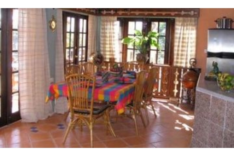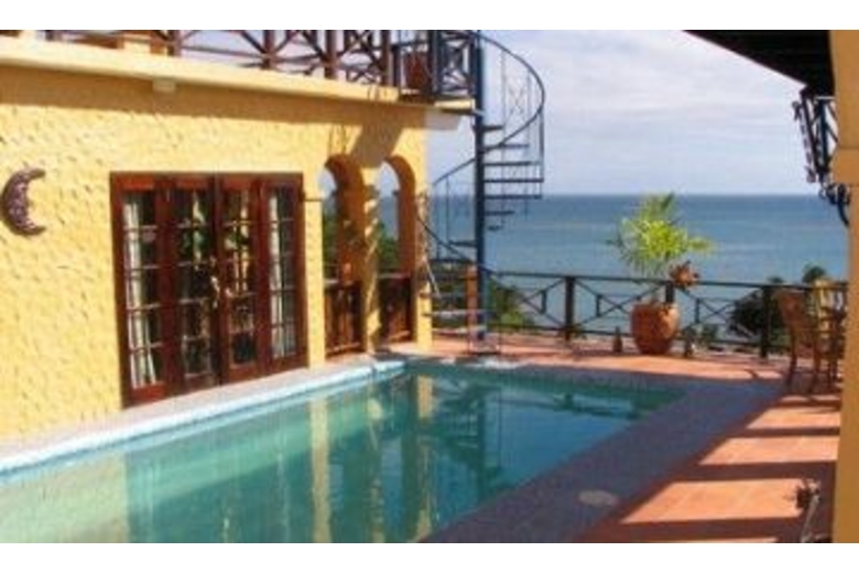 Tradewind Pavilion is one of two villas at Reef View Pavilions. The property consists of two fabulous villas, which have been crafted into a hillside in the coveted residential area of L’Anse aux Epines on the southwest corner of Grenada. The villas are separated by height, distance and a rapidly maturing tropical garden. Each villa has its own swimming pool and is just a few minutes walk to a neighborhood beach. Panoramic views and the ocean breeze combine to make Reef View Pavilions a much sought after Caribbean vacation delight.One of two luxury villas on the Reef View Pavilions property (the other is Turtleback Pavilion), Tradewind Pavilion is a fully air-conditioned three bedroom, four bath/shower villa.The villa comprises multiple indoor and outdoor areas from which to enjoy the scenery and your various vacation activities. It has been designed to offer fantastic views and a connection with the outside from almost all sections, without compromising privacy.Tradewind includes a rooftop pavilion with comfortable built-in seating, wet bar, dining table and sun deck, overlooking the beautiful swimming pool. It offers a magnificent 360° view of the neighborhood and its surrounds, Grenada’s lush hilltops and, of course, the ocean.The easterly trade winds breezing through the pavilion will cool your body and lift your spirit. The main level comprises a large kitchen, intimate living and dining areas in an open plan layout, surrounded by wrap-around porches and verandas and a swimming pool.The indoor spaces are air conditioned and have ceiling fans for absolute comfort. The kitchen is fully equipped complete with microwave oven, liquidizer, coffee maker, toaster and teapot. From the indoor living area, wooden French doors fold back onto a covered terrace revealing the lush, tropical gardens and the magnificent bays and ocean beyond. Gentle breezes cool and caress your skin allowing you fully immerse yourself in the tropical and serene surroundings.The three comfortable bedrooms are located on the lower level. The master bedroom, named the Plumbago Room, is king-bedded with ensuite bathroom and shower.The Plumbago bedroom also has direct access to a large outdoor-inspired bathroom with whirlpool tub, and two invigorating showers lined with river stones, sea coral, and even a seat made of fossilized squid.The Plumbago Room is fitted with multiple French doors that offer a full view of the sea - even while relaxing in bed. The Plumbago Room adjoins a covered veranda where you can read, relax and enjoy a drink.The second bedroom, called the Reef Room, is double-bedded with an ensuite bathroom. The Reef Room is also fitted with multiple French doors that offer views of the coconut treed neighborhood beach, and luminescent reefs beyond. The Reef Room also has a small covered porch with a lovely view.The third bedroom, named the Regatta Room, is queen-bedded with an ensuite bathroom. The Regatta Room is fitted with French doors that lead to its own small covered porch and onto the courtyard outside.Surrounding Description