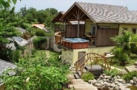 On a hillside in Grenada sits a handful of delightful villas, amidst the tropical trees of a hidden garden. Hardwood decks from the forests of Guyana are finished with twisted local Cedar balustrades and bamboo screens sheltering hammocks from the sea breeze. Set into these decks are private massaging hot tubs overlooking the ocean.