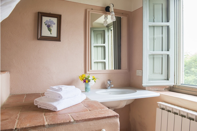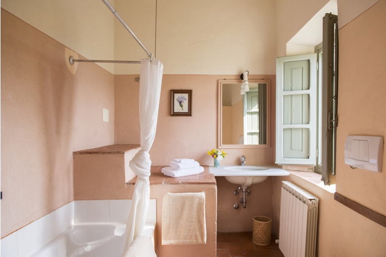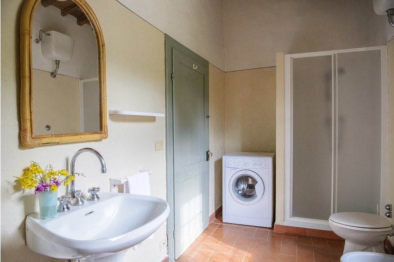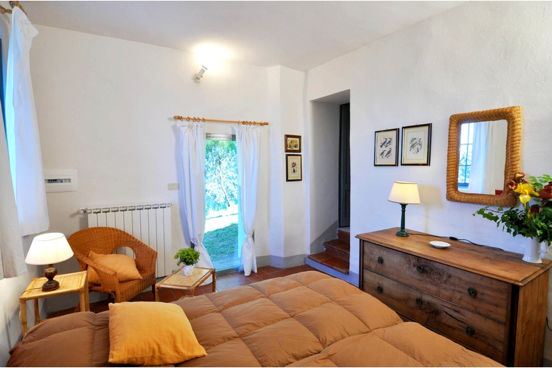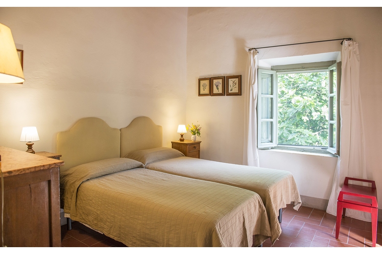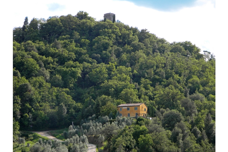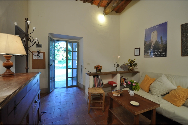 The farmhouse is on the hill, just below the Tower of Galatrona, symbol of the whole property. It is completely surrounded by chestnut trees and from the house there is a sweeping view of the valley.First floor - Entrance through a loggia, living room with an internal staircase leading to the kitchen, 1 room with double bed with bathroom with bathtub, 1 room with twin bed with bathroom with shower, 1 room with twin bed with bathroom with bathtub.