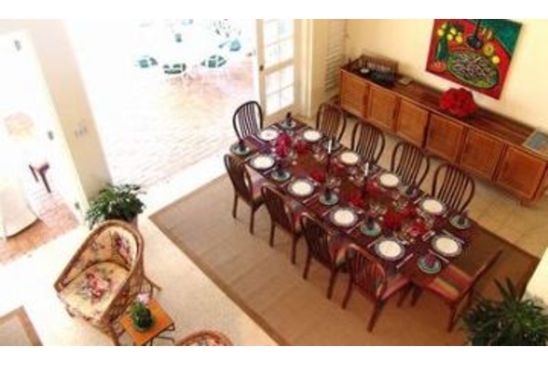 In the main house are two bedrooms upstairs and one downstairs. In theseparate cottage located behind the main house and adjacent to thetennis court are two additional smaller bedrooms (most suitable forteenagers). The interiors are comfortable but standard. A lovelyverandah overlooks the ocean and makes an ideal spot for relaxing. Justbehind the villa is a grassy lawn and the private swimming pool. Theflood lit tennis court is located in front of the villa.Blue Room (Upstairs): Kingsize bed; en-suite bathroom with tub-shower combination.French doors to private balcony and view of grounds and bay. Yellow Room: Upstairs. Queensize bed; en-suite bathroom with bidet and tub-shower combination. View of grounds, pool and bay. White Room: Downstairs. Kingsize or twin beds at guests� option; en-suite bath with shower. View of grounds, pool and bay. CottageRooms: Two more bedrooms in casual cottage behind the main house.Kingsize or twin beds at guests� option; en-suite bathrooms withshowers.Surrounding Description
