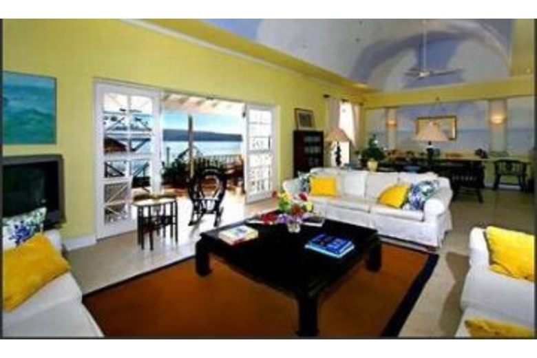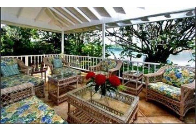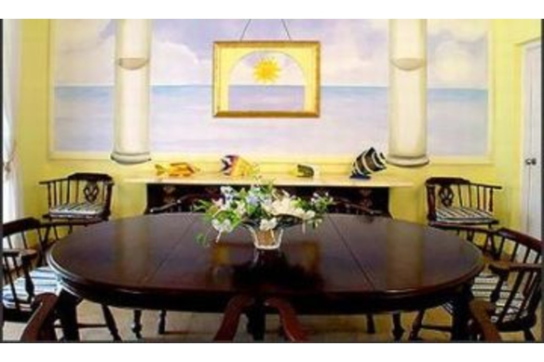 . The living room is sunshine yellow with a vaulted ceiling painted tomatch the sky. Antiques include a 200-year-old rocker made of twigs.Tortoise-back mahogany dining chairs Circa 1780 are from AdmiraltyHouse in Port Royal and were used by Lords Rodney and Horatio Nelson. Arough-hewn 17th Century chair in the master bedroom belonged to thecaptain of a schooner that plied between the islands. A 19th Centurylady's writing desk adorns another bedroom.The living roomopens wide to the 60' verandah ... furnished in wicker chaises, drapedwith flowering vines and overlooking the turquoise bay. On one side ofthe waterfront is a small sandy area. On the other side, cut-stonesteps lead into wonderful swimming and snorkeling water. From thewater's edge, it's an easy swim to the sunning platform. Watch romanticsunsets from the verandah or Jacuzzi plunge pool. After sunset, yourchef will serve you delicious candlelight dinners on Spode chinainside, on the open-air verandah, or in the gazebo over a natural coralformation on the water's edge. During the day, a bird feeding treedapples the gazebo and, in the afternoon, the pool. For all-daysunshine and blue, blue water... luxuriate in the buoyant bay which isSea Haven's front yard.The Sea Haven staff goes home eachnight. When guests have eaten dinner and are settled and comfortablefor the evening, Alfred the butler drives the staff home in his littlecar, affording guests absolute privacy. Alfred always locks uppart-way, leaves his telephone number with the keys and sets up morningcoffee in the kitchen. He is only half a mile away and back on the jobby 7:30 each morning.Surrounding Description