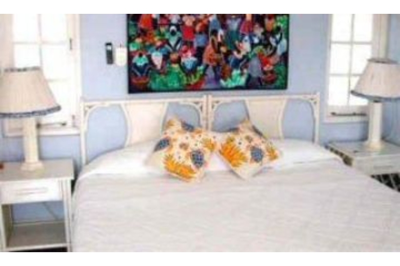 When it is time for bed, you are guaranteed a great night's sleep in one of the three bedrooms, all with full baths, in the main house, away from the teenagers who are in their own two bedroom cottage in the yard. The last thing you think of before going to sleep is what to have for breakfast (fresh fruits perhaps,) where to have it, and what time will you awake from another great nights sleep in Sea grapes. Blue Room:Upstairs. Kingsize bed; en-suite bathroom with tub-shower combination. French doors to private balcony and view of grounds and bay. Yellow Room:Upstairs. Queensize bed; en-suite bathroom with bidet and tub-shower combination. View of grounds, pool and bay. White Room:Downstairs. Kingsize or twin beds at guests’ option; en-suite bath with shower. View of grounds, pool and bay. Cottage Rooms:Two more bedrooms in casual cottage behind the main house. Kingsize or twin beds at guests’ option; en-suite bathrooms with showersSurrounding Description