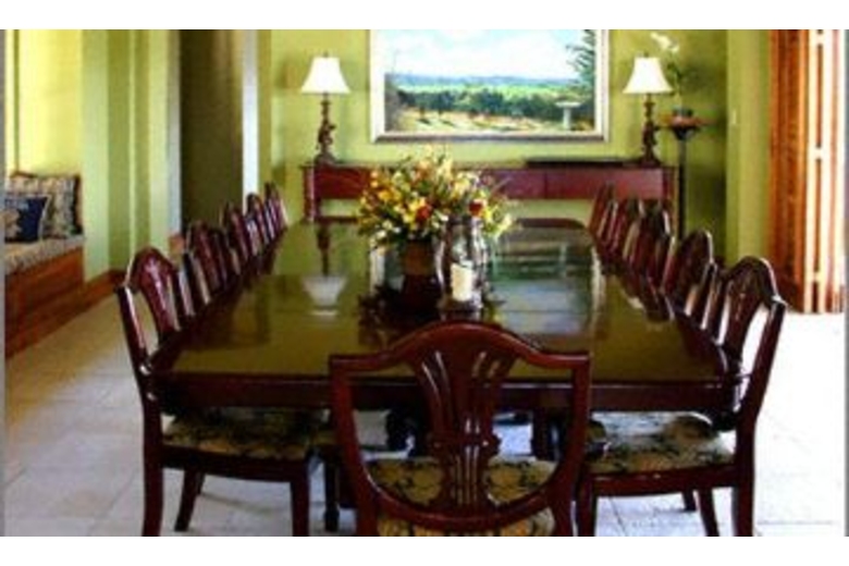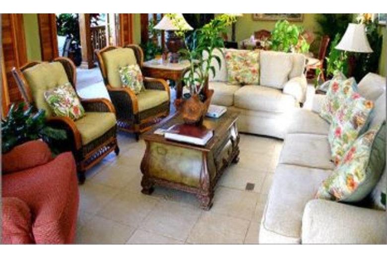 Textures of teak, cedar, Italian tile and Persian rugs complement the dramatic architecture. With families in mind, seven bedrooms (including two specifically for children) have been thoughtfully designed on individual split levels. The comfortable verandah is complete with black granite bar, ice maker and television. Sunset cocktail hours here drift into leisurely long dinners under the stars on any of five open-air dining areas. Inside is the formal dining room with 100-year-old 12' mahogany heirloom table. As a special treat, the staff will serve dinner on the very point itself, followed by a seaside bonfire if you wish ~ making for evenings to treasure and remember.Seven old cannons dot the two-acre grounds. Across the lawn is the indoor glass-backed squash court. The adjacent mirrored fitness room includes a universal weight machine and elliptical cycle in a breezy space with a wonderful view of the sea. Child friendly, Fortlands Point offers two complimentary portacribs, one high chair and games for children (and adults too). The DSS television system includes Disney and other children's programming. For more water adventures at various costs, the 52' Suzie Q will take guests sport fishing and picnicking, a wonderful treat for adults and children alike. If you've left your own pets at home, you'll be happy to see two playful German Shepherds romping on the lawn. They love children. Accommodations:Level 1: Living room, verandah, bar with television, sound system, outside dining areas, inside formal dining room, kitchen with 6-burner gas stove, walkway to staff quarters. All rooms open to wide stone terrace, swimming pool and hot tub. Four steps down to lawn, three steps down to main beach on the bay. Across the lawn, four steps down to two more beaches on the sea. Lower Level: Bedroom 1: Custom-designed mahogany kingsize bed (Baron's bed) plus daybed, television, French doors to furnished terrace and lawn, sea view, en-suite bathroom with bidet and tub-shower combination. Wheelchair accessible bedroom and terrace via ramped entrance and wide doorways. Level 2: Bedroom 2: Kingsize bedroom plus daybed, sea view, French doors to furnished balcony, en-suite bathroom with bidet and tub-shower combination. Bedroom 3: Queensize 4-poster bed, sea view, en-suite bathroom with tub-shower combination. Children's Room: Twin beds, en-suite bathroom with tub-shower combination Level 3: Captain's Room: Named for its prow-of-ship views. Kingsize 4-poster bed, television, spacious en-suite bathroom with double-basin vanity, bidet, large walk-in shower (big enough for two) with 2 showerheads and 3 waterjet body massagers Family Room: Comfortable sitting room with large surround-sound television, DVD player, balcony and sea view. Level 4: Bedroom 4: Large loft bedroom under high peaked ceiling. Kingsize bed, spacious bathroom with bidet and large walk-in shower (big enough for two) with 2 showerheads and 3 waterjet body massagers. Sea view from bedroom, bathroom and shower. Children's Loft: Twin beds in small cute blue room under peaked ceiling, en-suite bathroom with walk-in shower. All bedrooms feature state-of-the-art remote control air conditioners and ceiling fans. All bathrooms are fitted with stainless steel Kohler fixtures.Surrounding Description