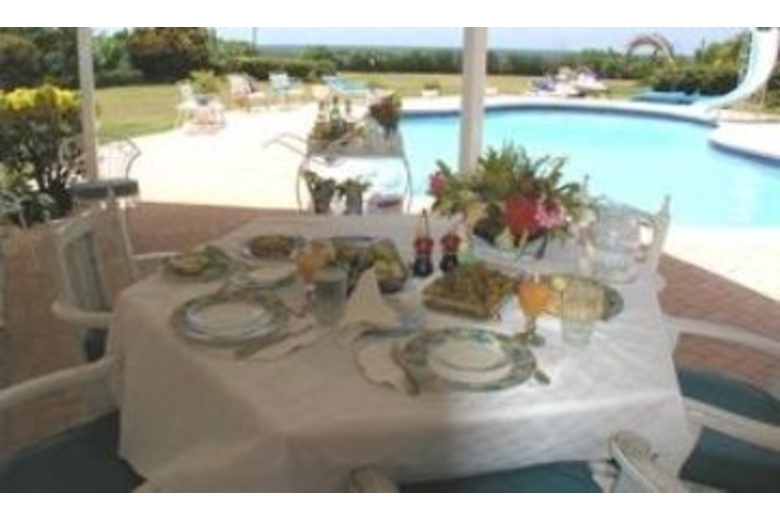 Step through the beach gate toswim, snorkel or kayak; the turquoise Caribbean is at your feet. Walkto golf, tennis, and horseback riding or relax around the pool.Thecomfortable, spacious living room is built in the open, Caribbeanstyle. Fine examples of local art are throughout the villa. Thehigh-beamed ceiling, louvered and sliding doors open to the patio,grounds, and the cool trade winds. The villa has a complete stereosystem, satellite TV, VCR (VHS) and family games. Dine inside the opendining area which seats 8 comfortably or in the airy gazebo overlookingthe grounds, pool and blue Caribbean.Sun Spot Villa has a fullstaff consisting of cook, houseman and housekeeper. Laundry service isprovided at no charge. Golf is available at the Breezes course; only athree-minute walk.Surrounding Description