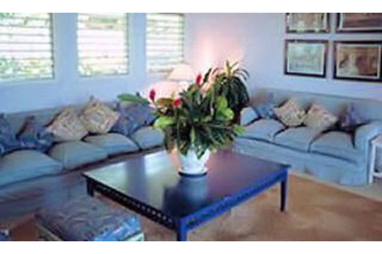 Villa Mawr is a comfortable four bedroom ocean view villa on an acreand a half of lush tropical gardens. All four air conditioned bedroomsare equal in size and offer a choice of king or two single beds inthree of the rooms, and queen bed in the fourth. Two bedrooms occupythe lower level and have private patios flanking the pool area.Separating these two is a spacious sun room opening onto the pool andexpansive lawn below. One of the two upper floor bedrooms has its ownprivate ocean view balcony, The living area, newly decorated in blueand green fabrics with washed walls, opens onto a thirty foot longcovered verandah overlooking the pool, with a magnificient ocean view.Surrounding Description
