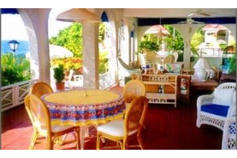 Entrance is down a dramatic and long palm tree lined driveway. The main house is built on two levels. The interiors are defined by spacious rooms unto multi-level terraces running the entire waterfront length of the estate. The indoor dining area is located directly off the living room and overlooks the sea. A spacious game room off the pool and exercise room with pool access are, also, part of the common areas.Golden Clouds offers seven air-conditioned bedrooms in the main house and an additional two in the separate garden cottage. All of the bedrooms are tastefully furnished with private baths, ceiling fans and many with TV’s. Amenities include digital satellite dish, CD stereo, DVD/VCR library, 1500 book library, and FAX machine.Of special mention is the wonderful staff at Golden Clouds that is renowned for its excellent service and culinary skills.Golden Clouds provides a very comfortable and relaxed atmosphere that is perfect for large groups and extended families.Surrounding Description
