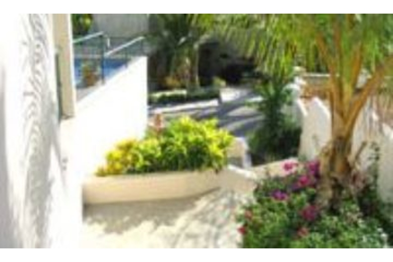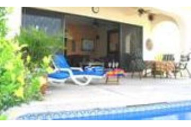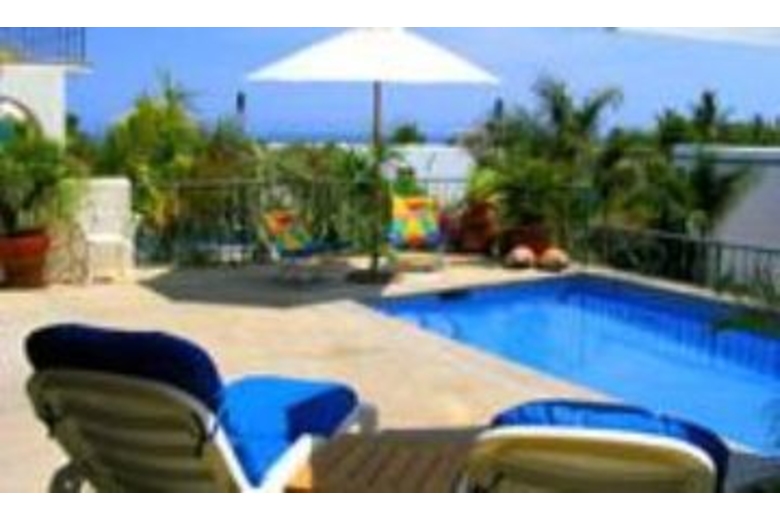 This modern, custom built, non-smoking private villa features three large bedrooms, each with its own large private full bath with double sinks, a fully equipped kitchen, large dining and living rooms with sliding glass doors that open up to the patio and swimming pool area. The beautiful brick cupula stairway takes you to the two upstairs bedrooms with king and queen size beds and sliding doors that open up to a private balcony overlooking the pool, patio and ocean view. The main level bedroom also has a queen-size bed with full bathroom, and sliding doors that lead to the garden and swimming pool area. There is also a half bath on the main level and a separate laundry room with washer and dryer. 150 channels of Direct TV with a 35 inch Color TV in the living room is also included. Or enjoy over 50 channels of commercial free XM satellite music as you lounge by the pool.Surrounding Description