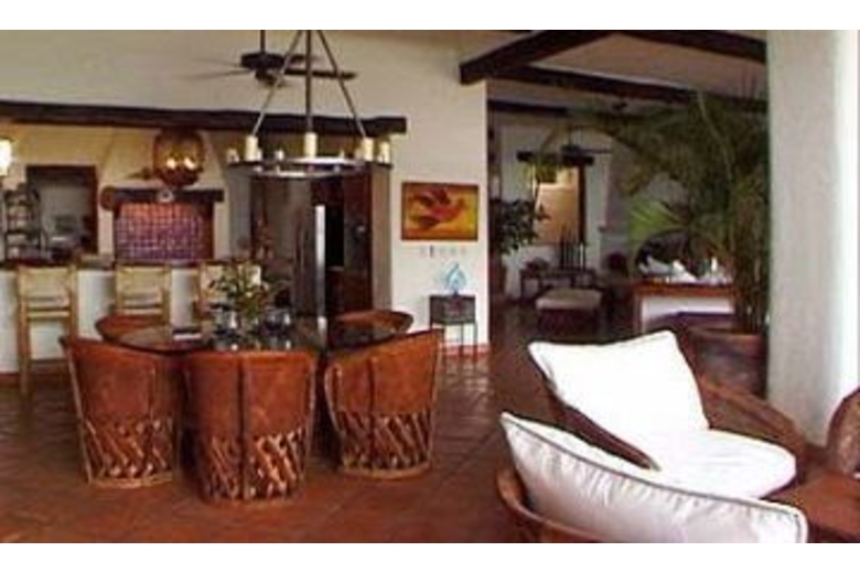 On the ground floor is the living room, dining room, fully equipped kitchen, and a powder room. Traditional Mexican furniture is set on terracotta floors under antique hand-hewn beamed ceilings. All rooms are enhanced by Mexican art objects. The master bedroom suite on the second floor is spectacular with king bed, fireplace, his and hers en suite bathrooms with jacuzzi tub, and a coupola shower overlooking the sea. The two guest bedrooms are poolside with en suite bathrooms. The heated swimming pool overlooks the sea. Villa Azul Celeste is a beautifully appointed and luxurious private villa with heated private swimming pool and full staff.Surrounding Description