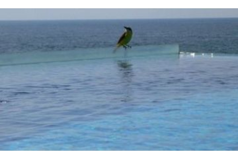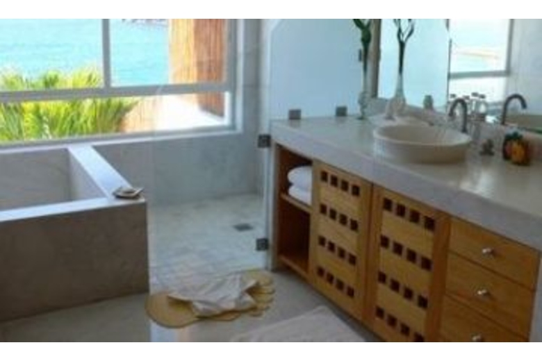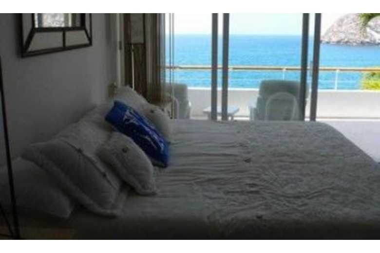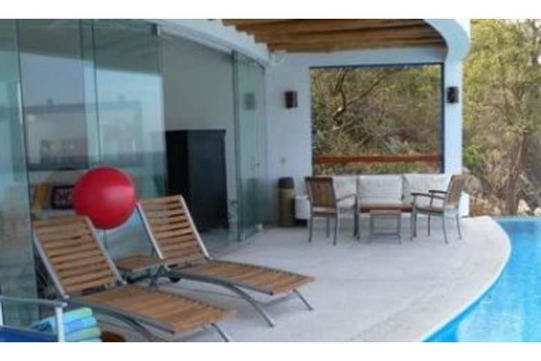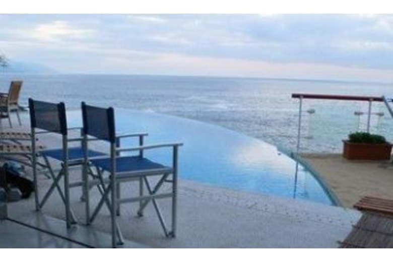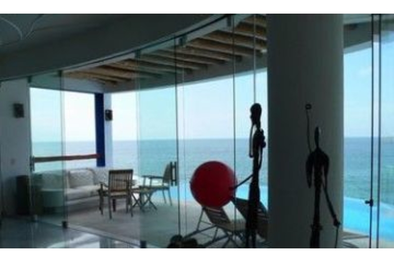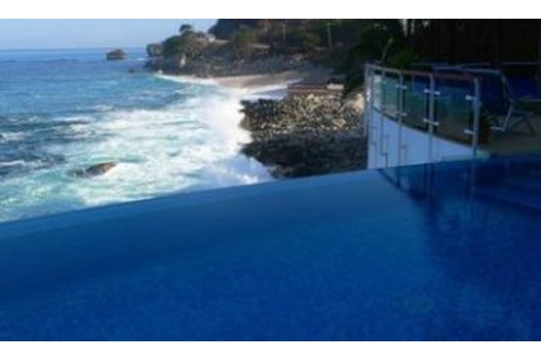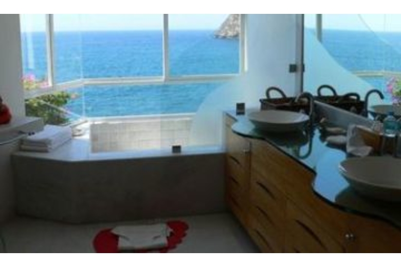 The sweeping ocean views from the bedrooms, bathrooms, terraces, dining room, living room and kitchen are spectacular. To the north you can see the lovely city lights and to the south, the rocky coast lined with sandy beaches and emerald hills.The four bedrooms with bathrooms comfortably sleep eight. The magnificent master suite covers the entire top floor and boasts a separate palapa for dining, a sitting room and terrace - all with panoramic ocean views. The other two spacious guest bedrooms have private bathrooms and terraces with ocean views. The bathrooms in these bedrooms have showers overlooking the surf below. The fourth bedroom has a private bathroom and a garden view.The main floor is elegant white marble lined with pebble mosaics. There are comfortable oversized couches, a high ceiling and skylights and an interior garden and bar. Large glass doors lead to a large sunny and partly covered terrace and a heated infinity pool that is spectacularly perched over the surf below.Surrounding Description