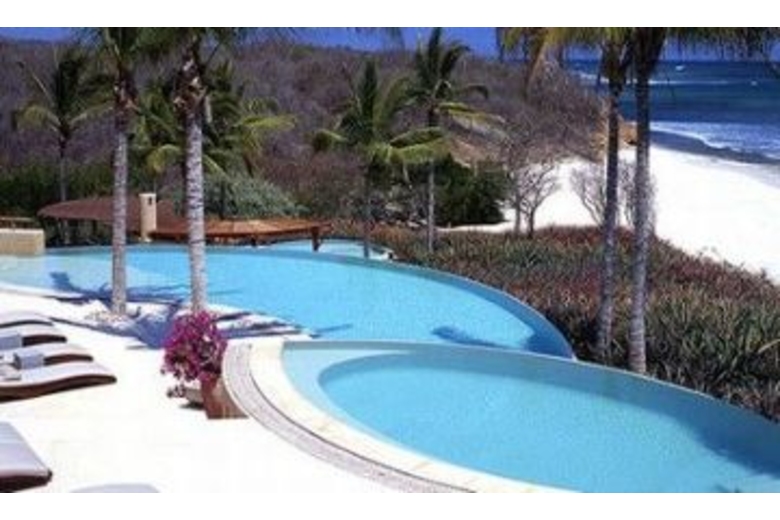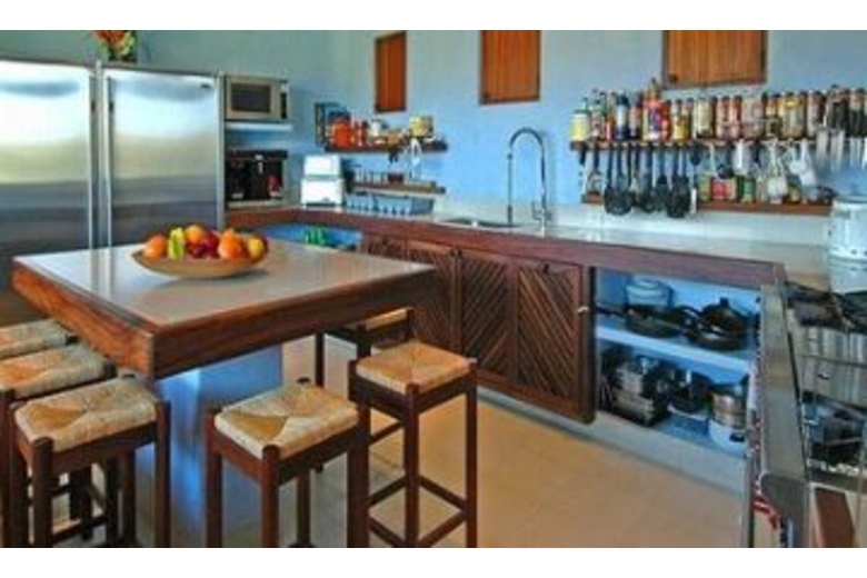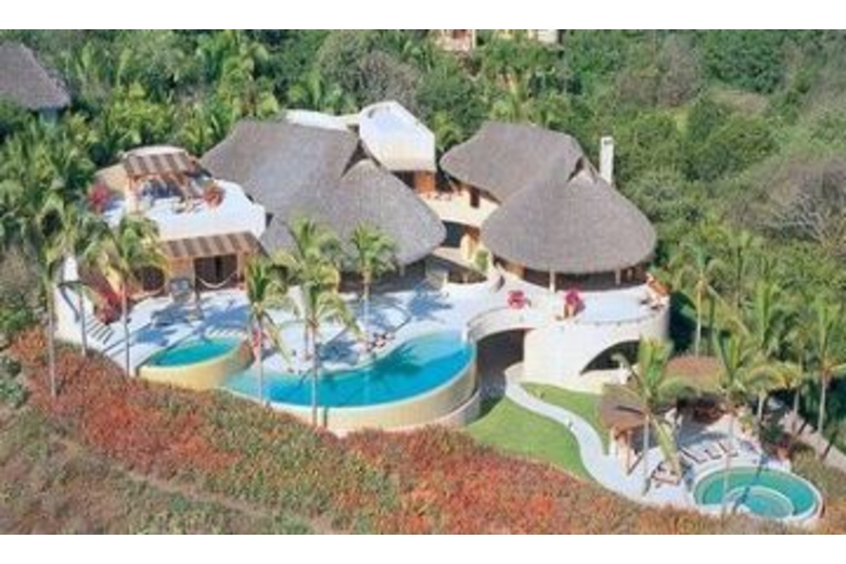 The main house is a 5-bedroom, two-story, 11,300-square-foot masterpiece situated on the beach overlooking Banderas Bay. Guests enjoy three separate infinity swimming pools on two different levels. The pool at the beach pavilion has a Jacuzzi inside the pool. The covered rooftop patio atop the master suite has a large day bed and presents a private space to relax and enjoy the view of the Bay of Banderas. Mariposa, the guest hacienda, features 4 beautifully appointed bedroom suites with full bathrooms and outdoor showers on the lower level bedrooms. More than 3,000-square-feet of living space makes for a comfortable stay. Two outdoor lounging areas are atop the roof and are ideal for sunbathing and stargazing. Enjoy a cozy covered patio with a day bed that is perfect for napping or lounging. The beach pavilion has a trellised seating area, outdoor grill, pool loungers, dining area, and a bar area and fireplace located steps from the beach. The living room pavilion overlooks the cascading infinity pools, the Bay of Banderas and the mountains in the distance. The dining room pavilion serves up delicious Bay of Banderas views. Main house (5 bedrooms): king / double / 2 doubles / queen / queenGuest House (4 bedrooms): king / king / queen / queenSurrounding Description