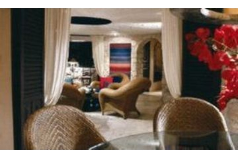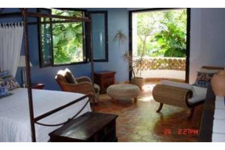 Off the foyer is the main living room with fireplace, opening in a wide arc to the terrace overlooking the bay and the ocean beyond, and an infinity pool and a large palapa-covered mirador. From the terrace, steps spiral down over a round pool with a fountain to the lower terrace with a large ficus tree pruned into the shape of a fan to provide privacy while permitting views of the bay on either side of the fan from the house. Steps lead from the lower terrace to the main garden, featuring over 25 species of palm, koi pond, three intimate sitting areas, a collection of orchids and a sprinkler system located high up in the trees that creates a fascinating jungle rainforest effect. The villa features three en suite bedrooms with beautiful ocean views. There is air conditioning in two of the bedrooms. The Casita has one bedroom with views of the garden.Surrounding Description