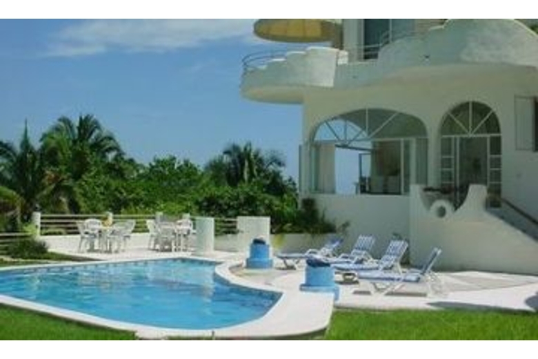 Five expansive balconies surround the villa. Three of them are on the ocean side with magnificent views of the bay while the other two are on the jungle side and offer marvelous mountain views. The master bedroom with Jacuzzi overlooks the Pacific Ocean and the city and provides twinkling lights at night.Outside there is a private swimming pool and terrace surrounded by lush tropical gardens. The villa is staffed with a cook, housekeeper and waiter from 9 AM until 9 PM. Please note that food and beverages are not included in the rental rates but the staff is happy to do the shopping.While a beach is located just a few steps from the villa, guests may not use that beach. Instead, they may use another beach located approximately 1 mile south and another one located 2 miles north named Mismaloya where the "Night of the Iguana" movie was filmed.Casa Gran Dia provides an interesting paradise, combining the ocean, mountains and tropical vegetation into a perfect harmony.Surrounding Description
