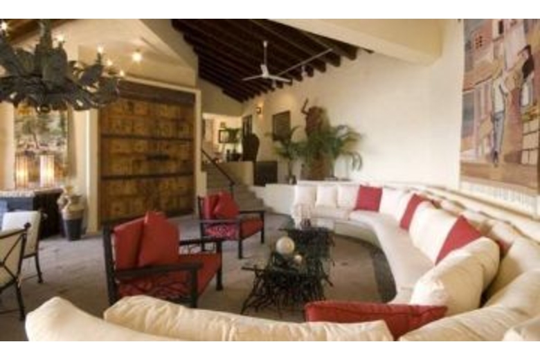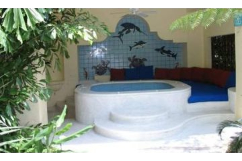 The villa also boasts of a large dining and gourmet kitchen area, six and one half bathrooms, media room with large screen satellite TV, DVD, surround sound and wet bar, game and exercise room. A three story waterfall cascades down to the pool terrace with large heated infinity pool, lounging area with large poolside palapa. The waterfall comes to rest at one end of the pool in a lush tropical garden area with a full size barbeque and Jacuzzi. There is also a very meticulous staff to take care of your every need.The villa's staff is meticulous. Daily maid service is provided. The house manager and chef is famous for his attention to detail, his outstanding cuisine and marvelous margaritas. At your request, he will plan special gourmet menus and arrange special activities and tours, at-home massages and spa services, picnics, and transportation. Purified water is provided and all food preparation and cooking is done with purified water.Relaxing and elegant, Casa Kalista provides amazing Mexican atmosphere; breathtaking sunsets; and calming, peaceful, and contemplative moments. It is really the ultimate choice for a revitalizing vacation. Already a romantic site for many weddings, it is also ideal for a large family re-union, and special arrangements can be made for sleeping children.Surrounding Description