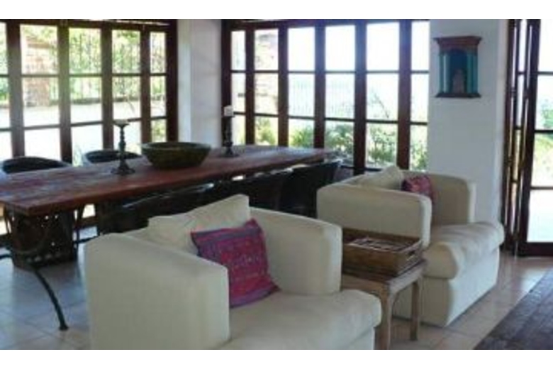 This home has been completely renovated with beautiful fixtures,antique furniture and rustic touches combined with the comfort andamenities you expect. Enter thru arched doors with beautiful Morrocanstyle wrought iron to a combination dining living area which opens ontoa long spacious covered veranda. The veranda runs the length of thehouse overlooking a spacious pool and terrace with fabulous views ofthe bay.The lower level includes kitchen, living, dining, a guest bath andmedia room. Two full bedrooms each with attached baths and beautifuldecor are also on this level. The master site covers the entire upperlevel and features a private balcony, ensuite bathroom and king bed.Surrounding Description