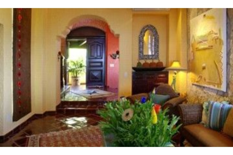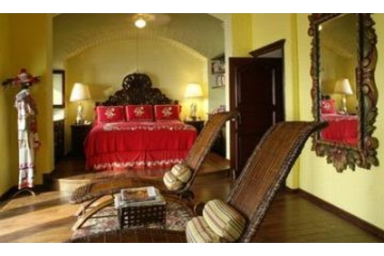 The villa's entrance through a courtyard is graced with a fountain and surrounded by lush tropical foliage.Built on two levels, each room is impressive is in it's grandeur.Traditional Mexican architecture is featured in this wonderful villawith high ceilings, open spaces, large window and plentiful outsideliving areas. The interiors feature polished, gleaming floors, dramaticarchways and softly colored walls. The furnishings are very tastefuland stylish and quite comfortable.Villa Rosa offers four bedrooms, all with distinct decor and six baths.Three of the bedrooms have king sized beds and one has a queen sizedbed. Each bedroom is air-conditioned and offers an en-suite bath aswell as spectacular views.Outside, the large furnished sunny terrace overlooks luxuriant tropicalgardens sloping down to the green-blue sea. The villa has its ownprivate, refreshing swimming pool and the outdoor Jacuzzi offersrelaxing views of rolling hills down to the sea or a dramatic canopy ofstars at night. A romantic roof top terrace enhances the ambiance ofthis lovely home.The villa offers exceptional staff (houseman/gardener, two maids and a cook).Villa Rosa is a haven of comfort and tranquility.Surrounding Description