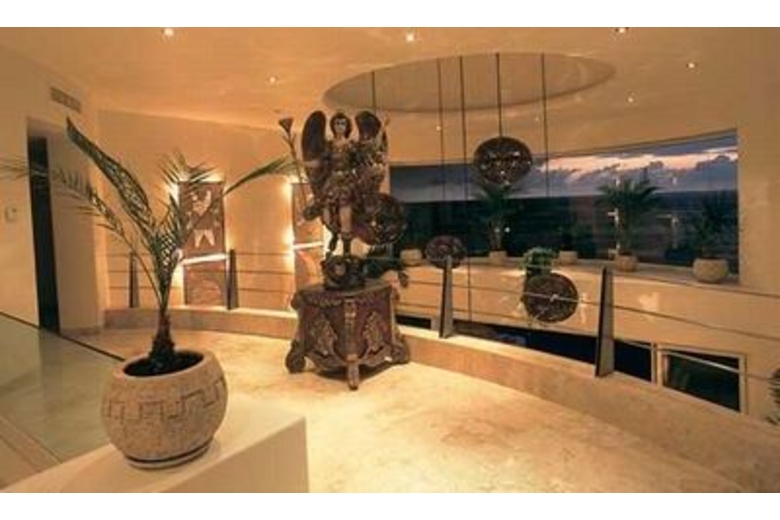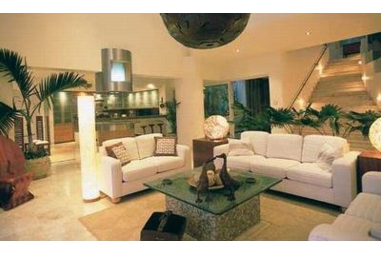 The grand staircase leads to the main salon where the living room, dining room, kitchen and circular island bar are united for ease of entertaining. This area conveniently leads out to the fabulous terrace that features a beautiful infinity pool, 10 person Jacuzzi, dining palapa and outdoor cooking area with rotisserie and wet bar. Spend your evenings on the terrace listening to the sound of the ocean amidst the splendor of cascading fountains and the warm glow from the gas lit fire pits.To complete your stay Villa Esplendora comes with a staff of 4 including a cook, houseman, maid and gardener. The cook will prepare 2 meals a day, breakfast and either lunch or dinner, Monday through Saturday.Master Suites - There are three ocean front master suites with unobstructed panoramic views of Banderas Bay. Retractable doors open up these rooms to the sky and ocean and all three enjoy the comforts of king beds and in addition to private Jacuzzis perched on private balconies.Bamboo Garden Bedrooms - Bamboo gardens and cascading waterfalls lead guests to these cozy private bedrooms in the interior of the home, one equipped with a king bed and the other with a queen bed.Dining/Kitchen/Family Room - The grand staircase leads to this area where the kitchen, dining room, island bar and family room all blend together to make entertaining easy and enjoyable. This area seamlessly opens to the huge pool terrace area through open retractable doors.Pool Terrace - The pool terrace features a large infinity pool, 10 person Jacuzzi, dining palapa, barbeque, rotisserie and wet bar. The pool is bookmarked by two fountains and fire pits that provide warm atmosphere at night. Speakers located on the pool terrace connect to the whole house sound system. There is plenty of comfortable outdoor seating and lounges to enjoy spectacular views of the ocean, Los Arcos and the mountains that frame beautiful Banderas Bay.Surrounding Description