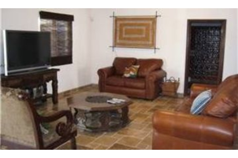 This 2 bedroom, 2 bathroom home is the guest house of Casa Espiritu. This house has 2 levels with the lower level has a one car garage and the upper level is the livable area. In addition to the bedrooms the upper level has a large patio with built-in barbecue, a kitchen, living area and dining area. The kitchen consists of a 4 burner stove, refrigerator, and necessary small appliances. It also has fans, central air and a satellite TV.Surrounding Description