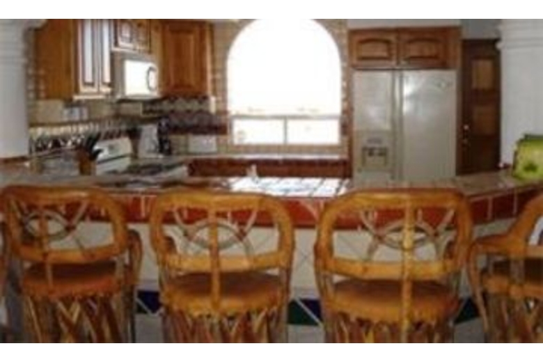 One master bedroom suite, which is ocean side and has access to the patio, has a king bed and large private bath with walk-in shower, two closets with mirror doors, and wood burning fireplace. The second master bedroom suite is also ocean side and has access to the patio, has a queen bed and large private bath with walk-in shower, two closets with mirror doors and wood burning fireplace. The third master bedroom suite, which has a beautiful ocean view, has a king bed, large private walk-in shower, large closet with mirror doors and wood burning fireplace. The very spacious fourth bedroom has two sets of bunk beds and can sleep up to 6. The bottom bunks are double beds, with twin beds on top. There is also a large mirror closet. The fourth bathroom is spacious and has a walk-in shower. The kitchen is fully equipped with all major appliances and most small appliances including coffee maker, toaster, and blender. The great room has a beautiful wood and boveda Cupula ceiling, wood burning fireplace and ample seating, TV/VCR/DVD and CD players, breakfast bar with bar stools for five, and dining table that seats 6, and a beautiful view of the Sea of Cortez. Other amenities include central heating and cooling, and fans in all the rooms. The large front patio has ample patio furniture, an outside shower, gas barbeque and fire pit. Owner requests no smoking inside and no pets. Sheets and one set of bath towels per person are provided.Surrounding Description