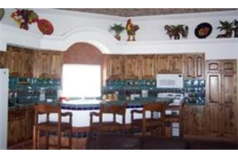 The kitchen is fully equipped. The great room is spacious and airy with large picture windows, ample comfortable seating, including a beautiful leather couch, wood burning fireplace, (bring own wood or fire logs) high definition TV with satellite and DVD, dining table, large breakfast bar that doubles as a preparation space, a beautiful boveda ceiling, and a fabulous view of the Sea of Cortez. The covered outside patio is spacious and patio furniture is provided. There is also an upper deck for relaxing and viewing the beautiful Sea of Cortez. Sheets and one set of bath towels are provided.Surrounding Description