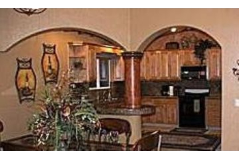 This is a three bedroom, three bath home. In the first bedroom you will find a king bed and a TV and DVD/VCR. In the second bedroom you will find another king bed and in the third bedroom there are bunkbeds. There is also a sofa sleeper in the living area.Surrounding Description
