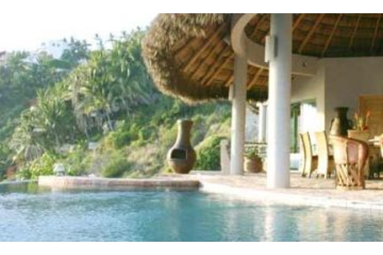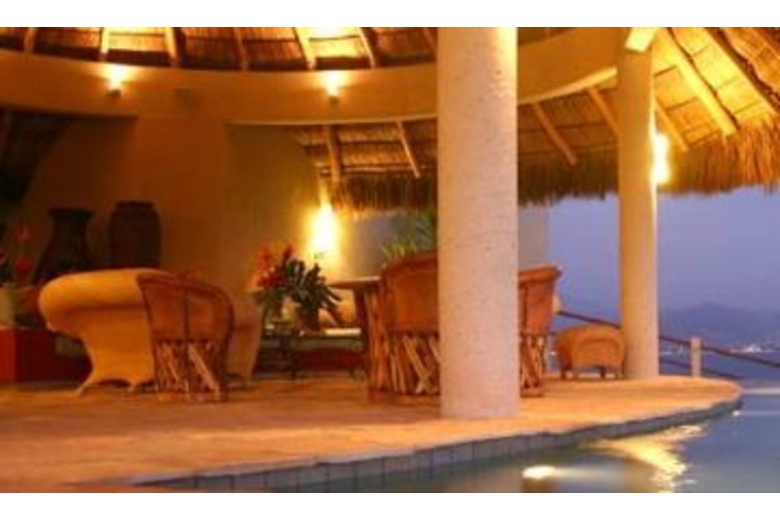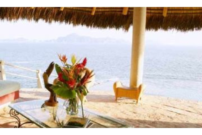 Once inside the 300 year old gate designed in India to keep the elephant at bay. You will experience the perfect vacation getaway. Crowning our spacious open air living and dining area is a 1200 square foot palapa, the palm thatched roof. The infinity pool seems to connect with the pristine waters of the pacific ocean, wrap around stairs lead you to sun bathing on our aft deck. Yes, from sunrise to sunset, it reminds you of being on a ship at sea. The glass enclosed gourmet kitchen includes state of the art appliances, extensive granite countertops and a view to die for. For those who want to take time off from cooking, food and beverages of your choice are available thanks to our personal cook. A list of groceries and favorite foods may be sent before hand so you arrive to a well stocked home.Surrounding Description
