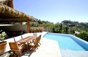 Each of the four large bedrooms is appointed with floor-to-ceiling windows to enhance your Pacific views. All bedrooms are crafted with marble. The wood cabinetry and the doors are all custom made and enhance the feel of the villa. Three bedrooms have kind-sized beds and the fourth has two double beds. Oversized-cut natural carved stone flooring and huge terra-cotta pots of bougainvillea enhance the open patio.Surrounding Description