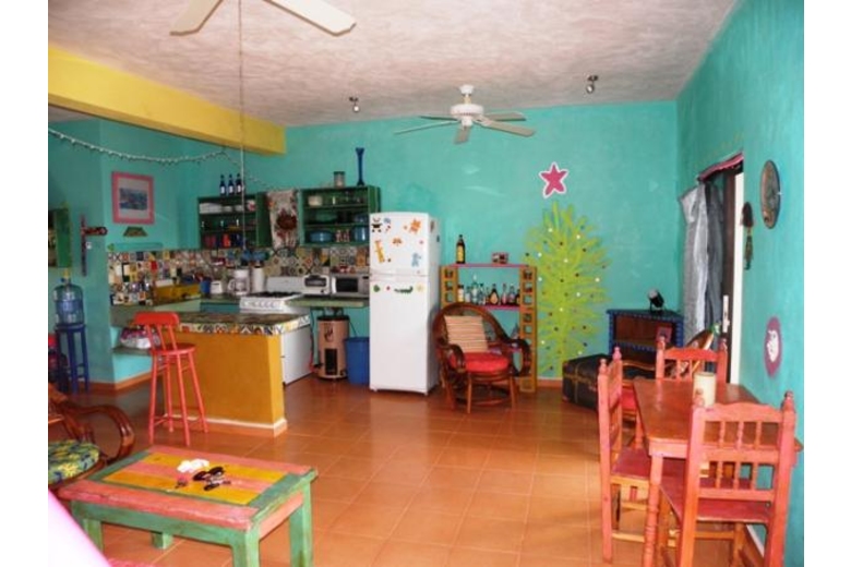 Casa Frida Kahlo is full of local art. The first floor is open concept with a colorful mexican tiled kitchen...living/dining room full bath with walk-in shower and a large patio on the waterside. The 2nd floor is also open concept sleeping 7 people. 2 dbls...1 single...1 king...with sliding glass doors on both sides to capture the lovely ocean breeze. There is a full bathroom with a walk-in shower. There's another patio on the waterside where you can watch the sunrise from your king size bed or sit outside and watch the local fishing and scuba boats go by. The 3rd floor is the roof, we have 3 hammocks and a large high back cement bench to sit on. You can see 360 degrees around the island from up there. You can sit in the sun or in the shade.. We are only steps away from La Lomita (a well loved family owned restaurant), a small tienda and the navy grocery store. The house is located on Juarez along the seawall. You can walk to town and the beach in minutes, or go shelling and for a dip in the ocean right off the back of the house.