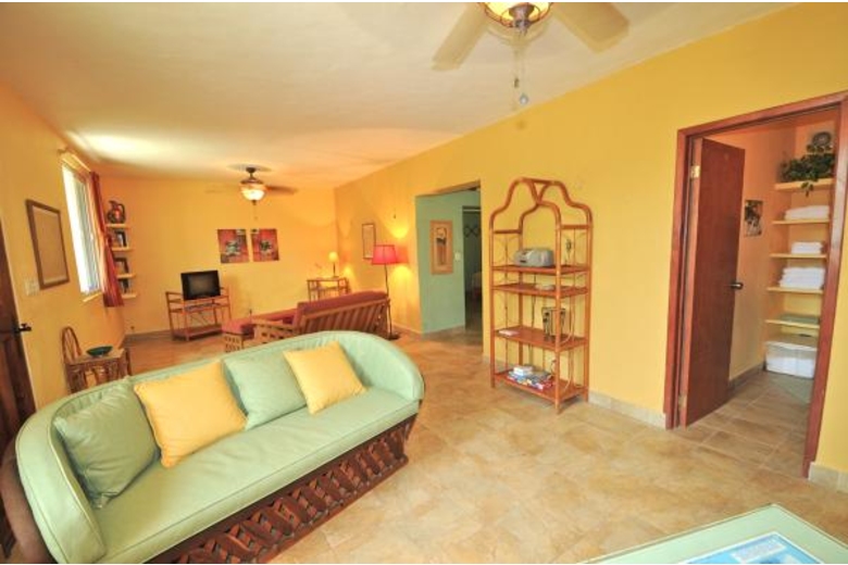 Located about one mile from downtown on the Caribbean side of the island, this house provides a unique Mexican get-away. Enjoy the luscious tropical gardens in the front of the house as well as the private patio in the back of the house. This is one of the only smaller homes on the island that has a full front and back yard, both which are completely secure with cement walls to create a courtyard ambiance.