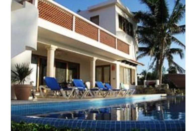 Casa Chaac is a 3 or 4 bedroom 4 bath home that sits on 4 lots in Playacar Phase 1 in Playa Del Carmen, Mexico. Few homes in this exclusive community can boast of having such a large, lush garden. Casa Chaac is perfect for gatherings of family and friends. The master bedroom has a king bed; there are 2 bedrooms each with queen beds and 1 loft bedroom with 2 sets of bunk beds. Each bedroom has a private bath, air-conditioner and ceiling fans.The kitchen and utility room are fully equipped including a full size washer and dryer; the study has a DSL line and a phone line(local calls only but great for credit cards calls!).The dining room table seats 8 adults, the living area is furnished with Sunbrella covered sofa, loveseat and large chair. A full view of the ocean is seen from the kitchen, living and dining area through large sliding doors.The covered porch is furnished with a dining table that seats six and four quality lounge chairs; you can take the stairs to a second story terrace for a wonderful view of the ocean and Cozumel. The half moon shaped fresh water infinity pool is great for large groups. The expansive yard affords guest plenty of privacy. The soft, sandy beach is only 50 feet from the backyard.The home is located in a private development with 24 hour security and bottled water is delivered directly to you. As a guest of Casa Chaac, you will feel a world away from the hustle & bustle of town, yet downtown Playa del Carmen with its fabulously chic Quinta Avenida (5th Avenue pedestrian walkway)and the ferry to Cozumel Island are a only a 5 minute walk from the house!