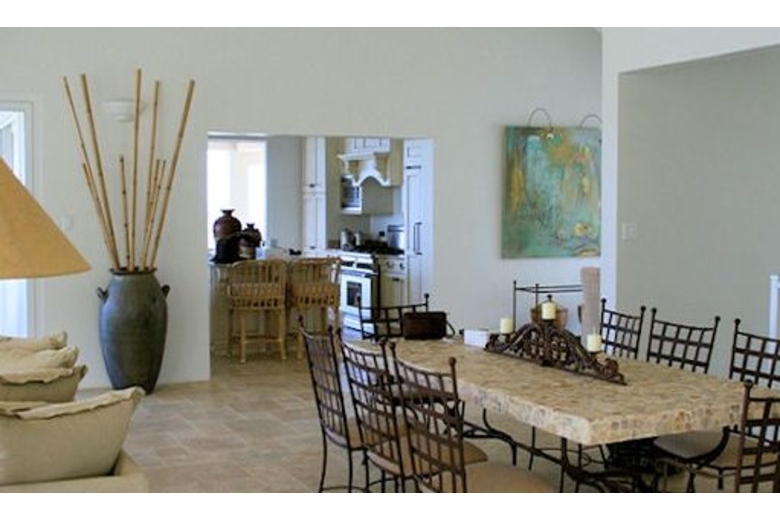 This three story villa offers five bedrooms and five bathrooms. The master bedroom has a king size bed, TV/VCR and full bathroom with jacuzzi and shower. The second bedroom has a king size bed, TV/VCR and bathroom with shower. The third and fourth bedrooms have two twin beds in each room and attached bathrooms with shower. The fifth bedroom is a separate loft area with kitchenette located on the lower level with it own private entrance. All bedrooms are air conditioned. The living and dining room are stylishly decorated in soft neutral tones. The fully equipped kitchen offers granite counter tops and stainless steel appliances.Surrounding Description