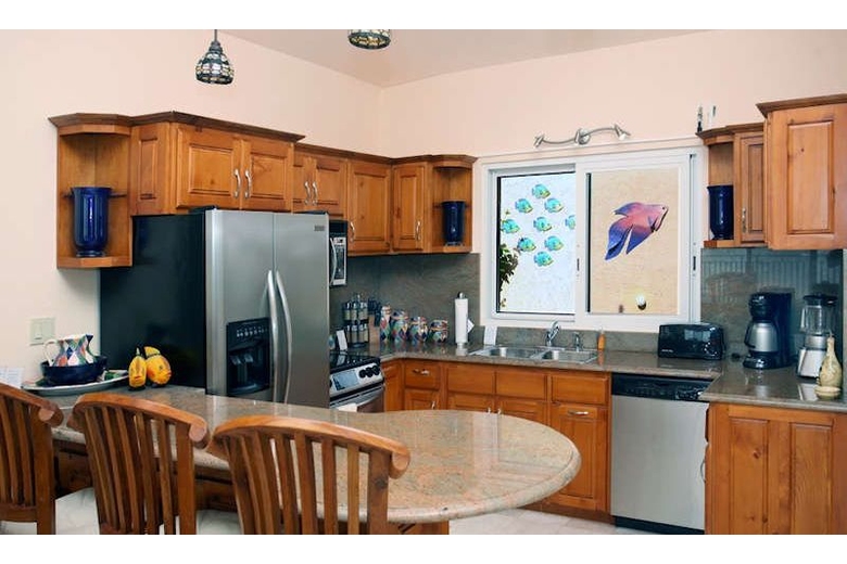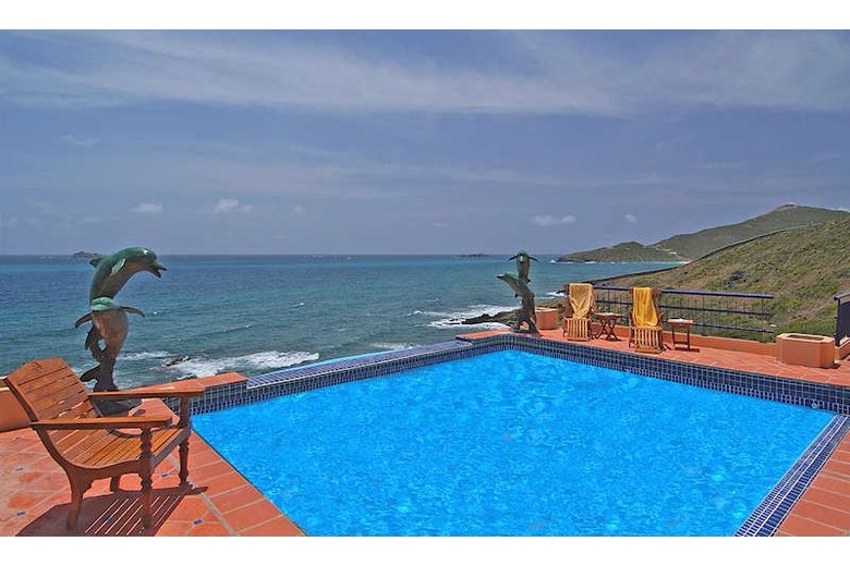 This newly built three bedroom, three and a half bathroom villa in Dawn Beach estates provides spectacular views of the Atlantic Ocean and St. Barts. It is a very spacious home and offers one level living. This home has a private infinity edge pool that rests above the ocean. It also boasts a fully equipped gourmet kitchen with stainless steel appliances and beautiful granite counter tops. The home is furnished with beautiful imported teak, rattan furniture, a wide screen television, CD, DVD player and surround sound system.Surrounding Description