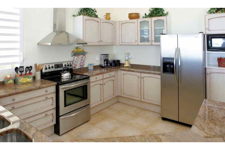 The villa has 4 air-conditioned bedrooms with four and a half baths, and can accommodate up to 9 persons (4 king sized beds and one twin bed, privacy for everyone!) The spacious living and dining rooms are also climate controlled and are exquisitely furnished in imported Teak and Mahogany. The entertainment unit includes a satellite TV, a DVD player and a CD player. The immaculate kitchen has a breakfast bar with fabulous marble counter top and is fully equipped with modern deluxe stainless steel appliances.Surrounding Description