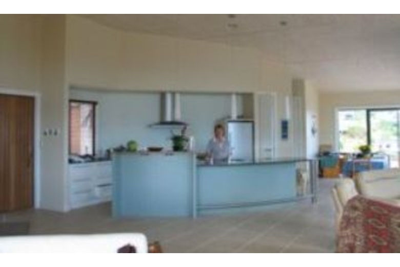 The bedrooms are all carpeted, the master room has a king sized bed, bedside tables, reading lamps, walk-in wardrobe, 2 seater couch, and bi-fold doors giving access to the deck so you wake up to fabulous views of Mercury Islands. There is an en suite bathroom with shower, toilet, heated towel rail and vanity. Next to the master room is the fourth bedroom, which has two single beds, wardrobe and shelving.Surrounding Description