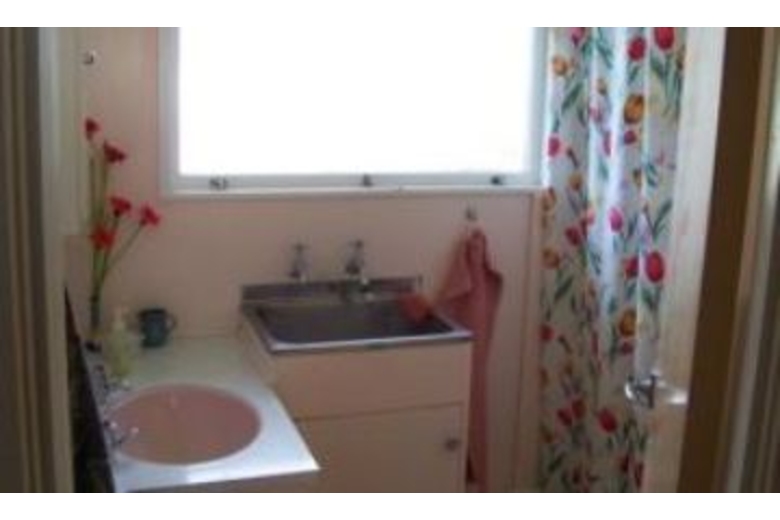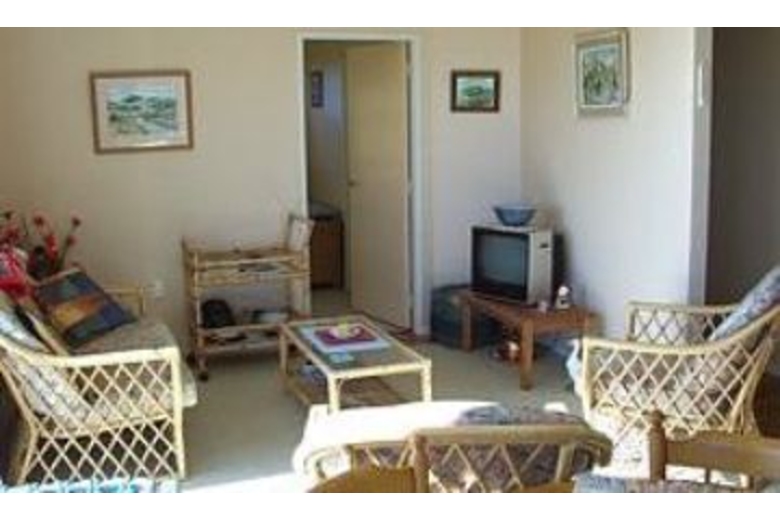 This home is located across the road from the beach with great views of the sea and the grass reserve in front of the beach. There is a small fibrolite deck outside the lounge ranchsliders with two chairs and a small table to help you enjoy the outdoors..