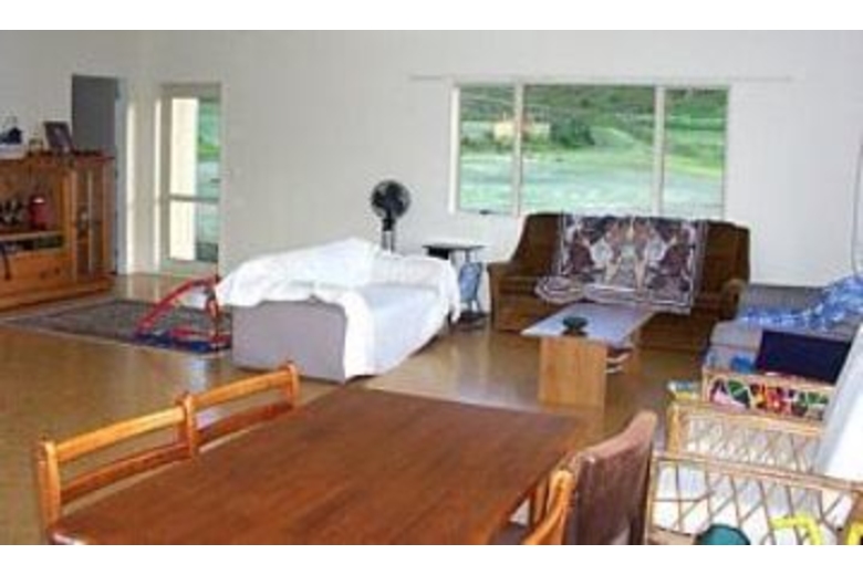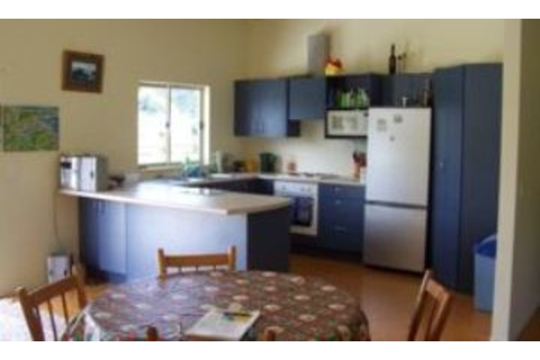 This holiday home features four bedrooms, a babies' room and one bath; a sleep out with two bedrooms and one bath. This holiday home also features a midi system stereo, no TV, oil column heater, a new electric under bench oven, bench top hobs, an older fridge, microwave, range hood, electric fry pan, toasted sandwich maker, waffle maker, coffee maker, coffee plunger, toaster, electric jug and the usual selection of pots, pans, crockery, breadboards, glassware and cutlery, automatic washing machine, a picnic table and a 4 burner gas BBQ.Surrounding Description