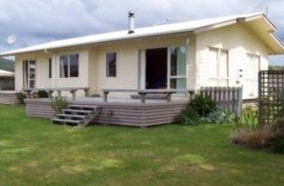 A two story, contemporary style home with curved roof lines, four bedrooms, two bathrooms, spacious living areas, sea views from master bedroom and large decking. Located three sections back from the reserve and beach, approximately 150 meters or two minutes walk away. Ideal for families!
