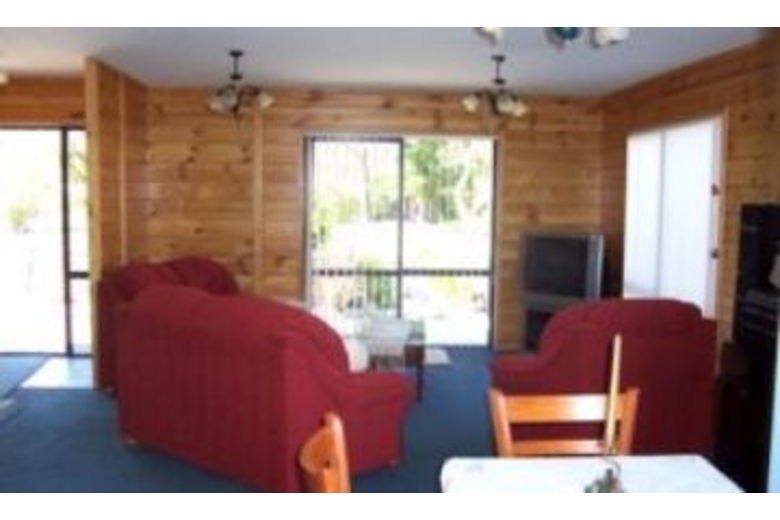 The house is fully carpeted with fabric curtains or vertical blinds over the windows and wood lined walls. The property is partially fenced - at the back and to one side, there is decking across the front and down one side with a smaller deck off the lounge. The beach is within a 4 minute walk, and outdoor furniture includes a picnic table, table and chairs and a 3 burner gas barbeque.Surrounding Description