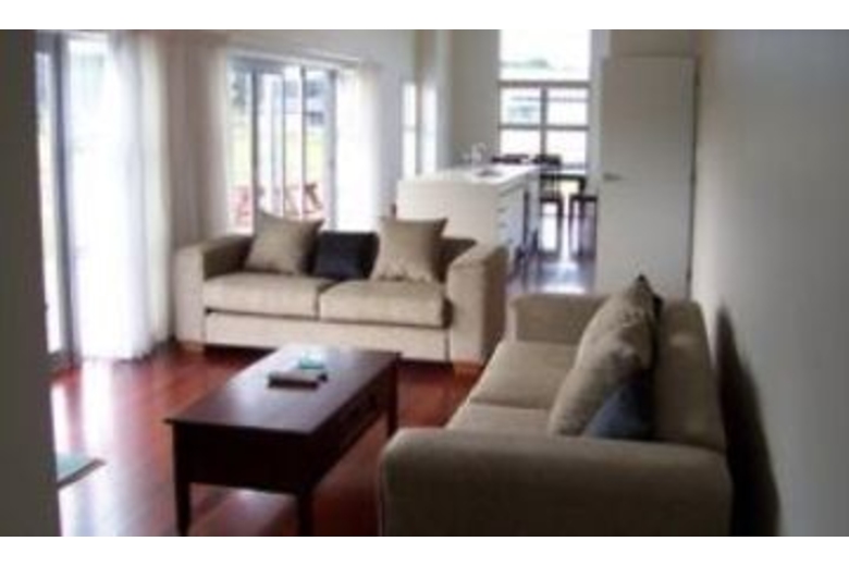 The master bedroom with en suite and access to the front deck through bifold doors is furnished with a queen size bed, bedside cabinet and lamp, wardrobe, and clock radio. The en suite has a shower, vanity, toilet and heated lights. The second bedroom has 2 single beds, 2 bedside cabinets, lamp and clock radio and wardrobe, and the third bedroom has 2 sets of single bunks and a wardrobe. All bedrooms are carpeted and fitted with a mix of blinds or curtains.Surrounding Description