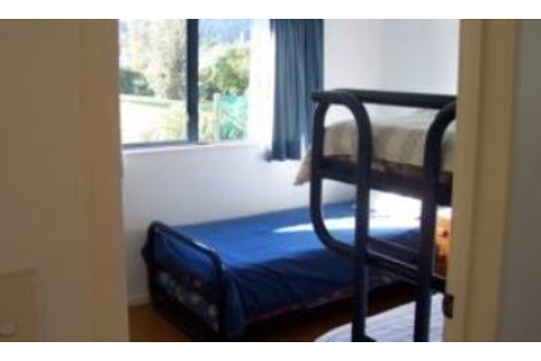 The master bedroom has a king size bed, bedside tables, lamps, 2 sets of drawers and wardrobe. This bedroom features an en suite with shower, vanity and toilet. The second bedroom has a queen size bed, a set of bedside tables, bedside lamps and wardrobe. The third bedroom has a single bunk set, plus a single bed with a rollaway bed below, 2 sets of drawers, and bedside lamps. All bedroom have fabric drapes.Surrounding Description