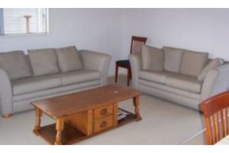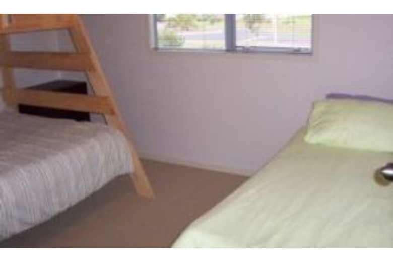 The master bedroom has a queen size bed, wardrobe with built in drawers, and a mirror. The second bedroom also has a queen size bed, a wardrobe with built in shelving and the third bedroom has a duo set of bunks (double on bottom, single on top) and a single bed, also a chest of drawers. All bedrooms have carpet and fabric blinds.Surrounding Description