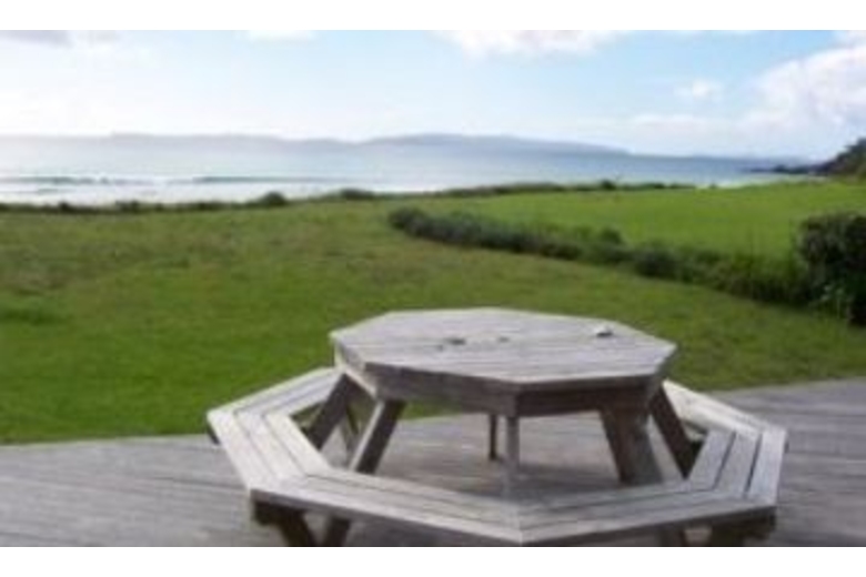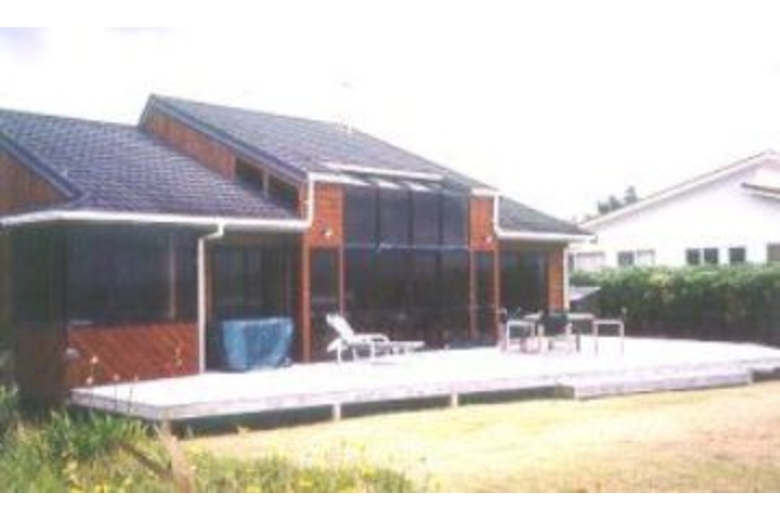 A roomy, contemporary home with knotted pine walls, high ceilings, a split level floor and quality furnishings. Absolute beachfront only 10 meters from the deck to the beach plus decking both front and back of the house to help you enjoy the outdoors.