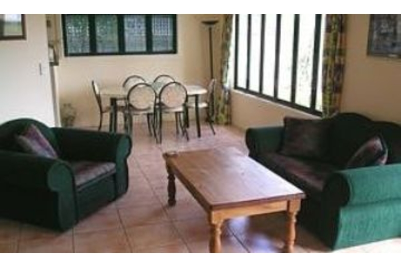 This two-story contemporary home with 4 bedrooms, 2 bathrooms features a full kitchen including microwave, dishwasher, washer and dryer. The outdoors offers partially covered decking front and side, with an outdoor living area with trellised walls, built-in seats and large wooden table, 2 directors chairs, 4 plastic chairs, sun lounger and a gas barbecue.Surrounding Description