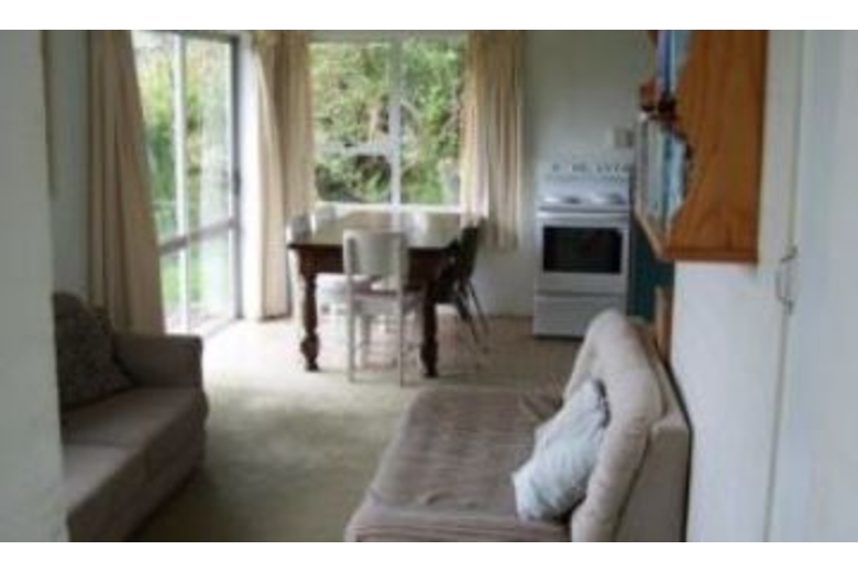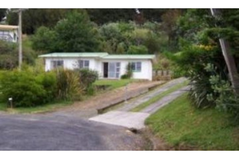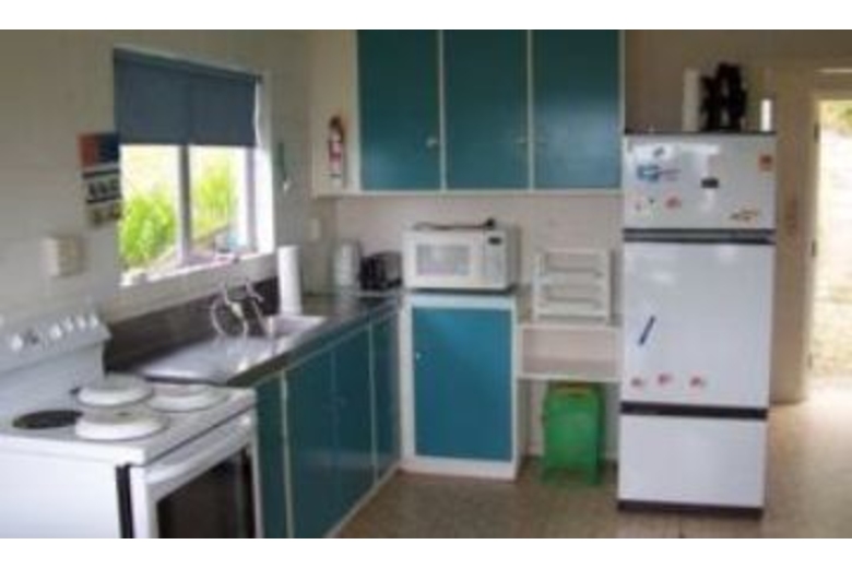All of the bedrooms are carpeted including the master bedroom which has a double bed and a chest of drawers. The second bedroom was once part of the living area with the back door now fixed shut and a wall and door now separating it from the living area. It has a queen sized bed and 2 sets of drawers and a ranch slider opening onto the front deck, it is from this room that the two remaining smaller bedrooms are accessed from with both having a set of single bunks each. The open plan dining, lounge area is carpeted, has fabric curtains and ranch sliders out to the deck. The lounge has an older lounge suite, coffee table, bookcase and two oil column heaters for any cooler evenings. Opito Bay does not get any TV reception without a Sky dish, so there is NO television at this property. The dining area has a wooden dining table and 5 chairs, 3 are wooden framed and two are steel framed with vinyl seats.Surrounding Description
