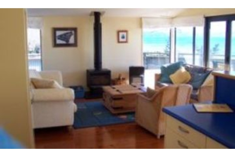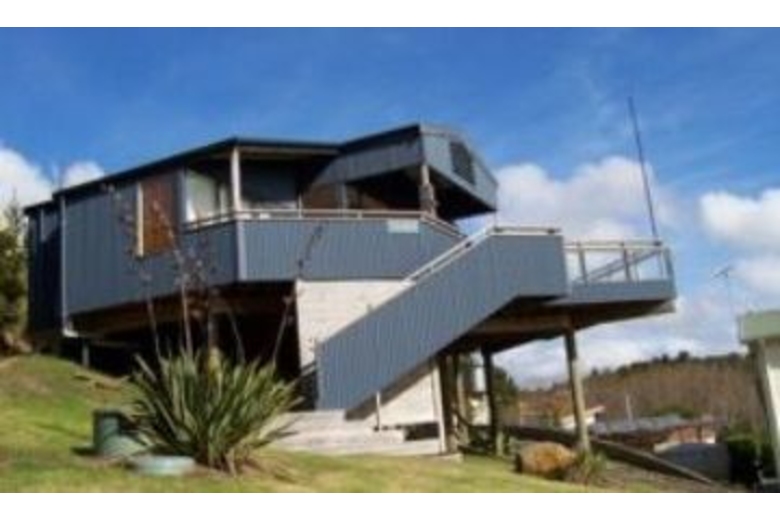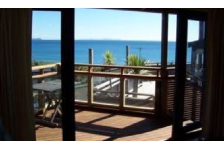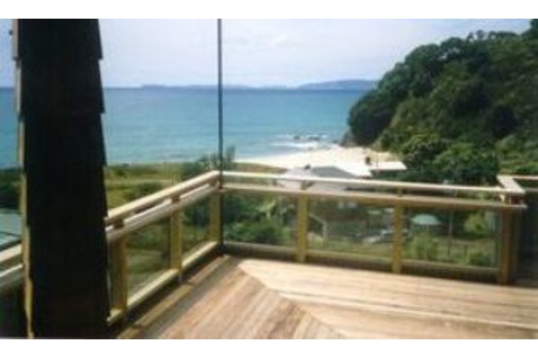 Located at one end of a small settlement of about 20 houses set in this idyllic bay with only a two minute walk down the driveway and across the road to reach the shores of the white sandy stretch of beach with an estuary at the other end. Built on an elevated section and superbly designed to take advantage of the surrounding native bush and the spectacular views over the beach and out to sea.
